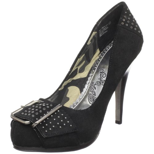 Leave it to Naughty Monkey to "fancy-up" a basic pump silhouette. This Rugged Racey pump has a soft suede upper with petite perforations and studs and an oversized buckle grazing the vamp, while the covered platform and spiked heel adds daring height and appeal.