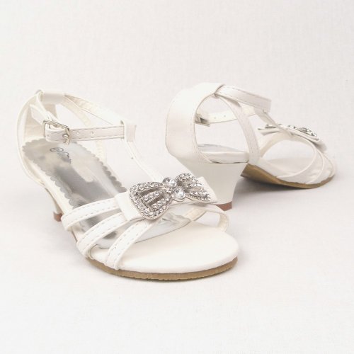 "Buy Girl's Dressy butterfly bow Strap Rhinestone High Heel Sandals White , 9-4" Overview