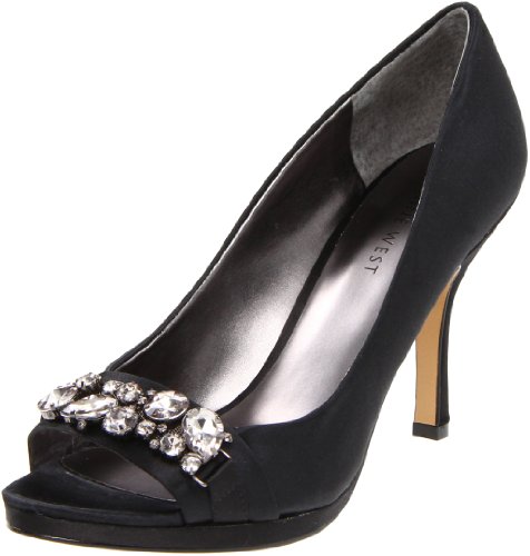 Nine West gives you an elegant look perfect for a memorable evening on the town with the Norilee pump. The flirty open toe shows off that pedi while a row of gems further heightens the dazzling charm. A smooth fabric upper gives a nice soft polish to the silhouette while the heel and platform give you a boost that's ready to dance the night away.You will not be disappointed with